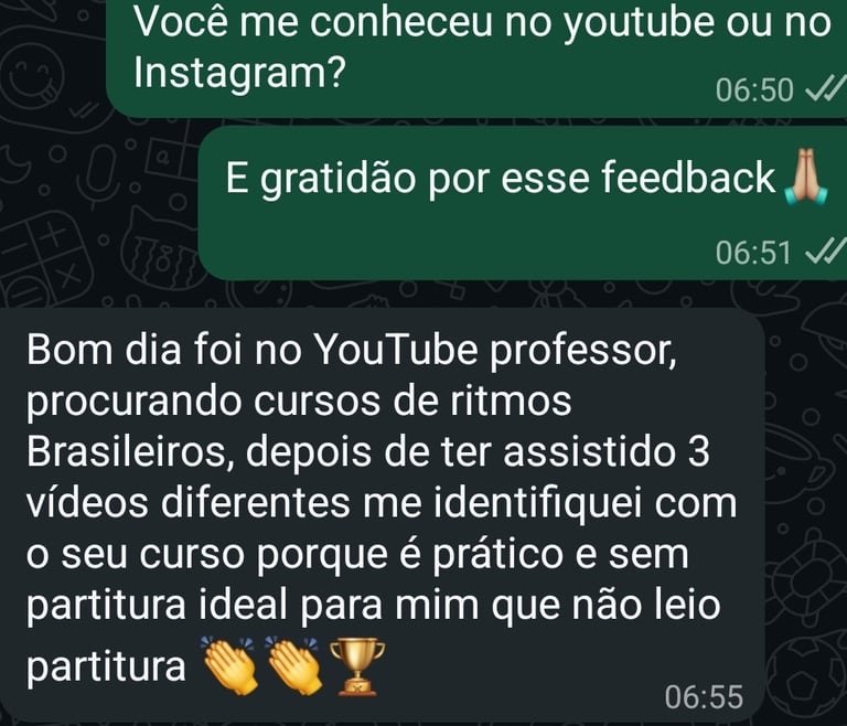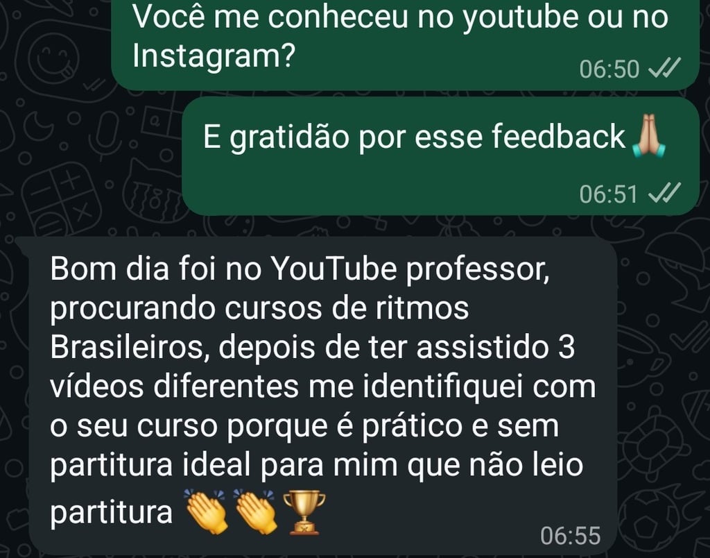 O curso me ajudou a tocar violão e entender os ritmos brasileiros de forma divertida.