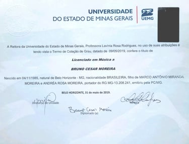 🎶Licenciado em Música pela Universidade do Estado de Minas Gerais