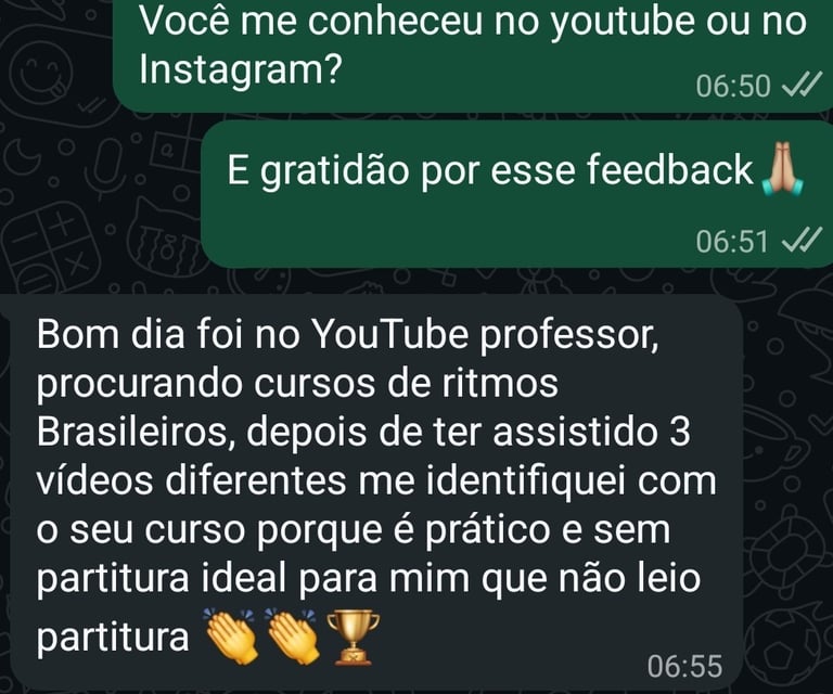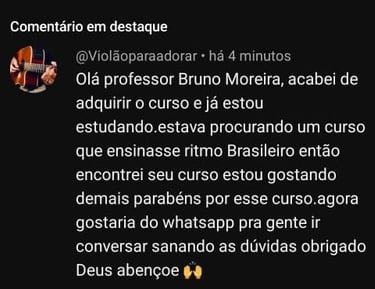 O curso me ajudou a tocar violão e entender os ritmos brasileiros de forma divertida.